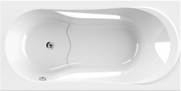 Ergonomisch gestaltete moderne rechteckige Badewannen mit integriertem Sockel, Überlauf-Ablaufgarnitur und nahtlos verbundener Schürze. Erhältlich in zwei verschiedenen Größen.