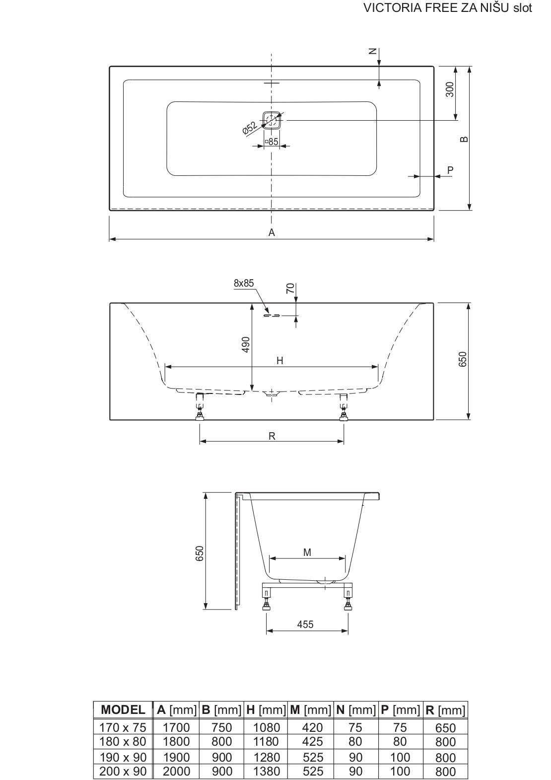 Victoria Free ist eine Serie rechteckiger Badewannen, die sich durch elegantes Design, Komfort und einfache Installation auszeichnen. Diese Badewannen bestehen aus hochwertigem gegossenem Sanitäracryl, das sich angenehm anfühlt, widerstandsfähig, von Natur aus rutschfest und pflegeleicht ist. Victoria Free Badewannen wird mit einem werkseitig installierten Sockel und einer Überlauf-Ablaufgarnitur mit „Slot“-Überlauf und „Klick-Klack“-Siphonventil geliefert. Alle Elemente werden werkseitig zusammengebaut und die Badewanne wird bereit für den Einbau in Ihr Badezimmer geliefert.
