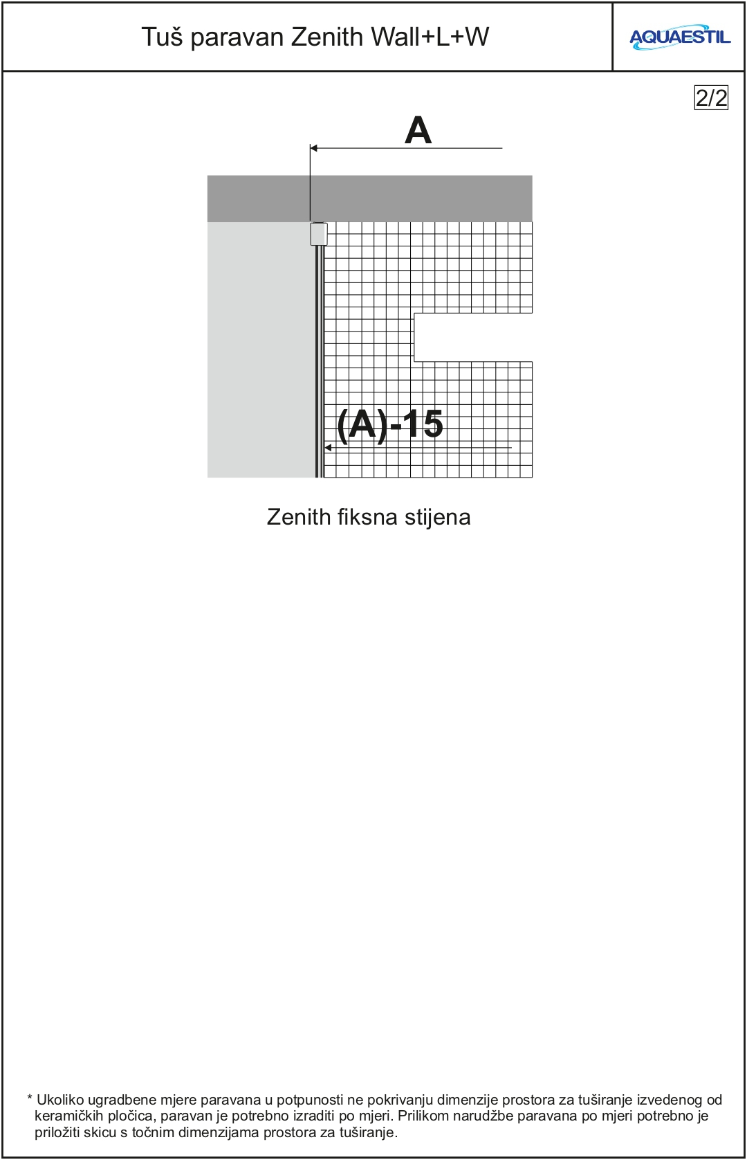- Ukoliko se paravan postavlja na pločice, a ne na tuš kadu, uz narudžbu je potrebno dostaviti nacrt sa točnim dimenzijama prostora za tuširanje.