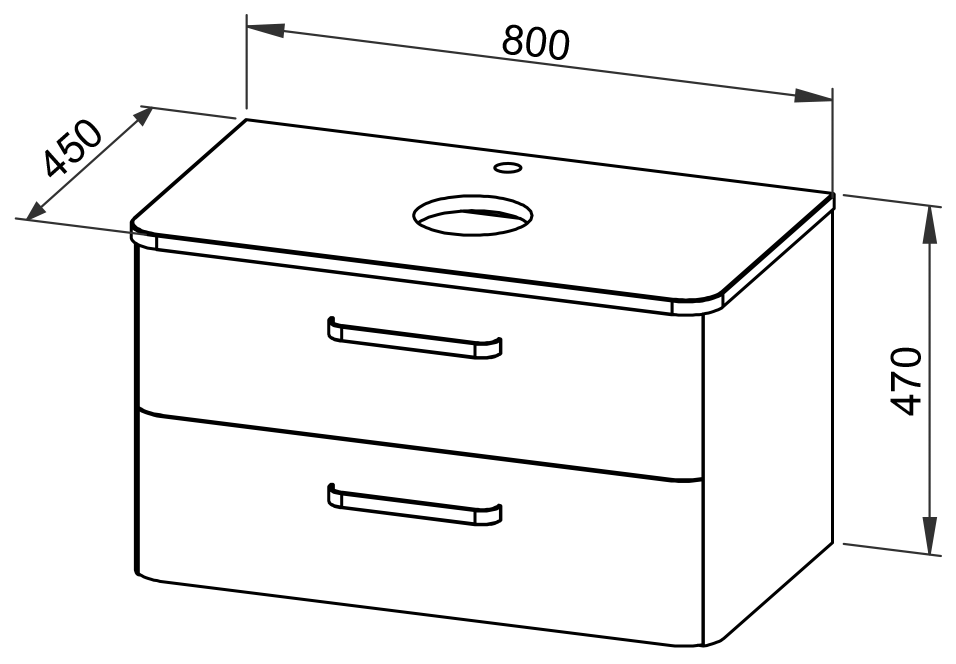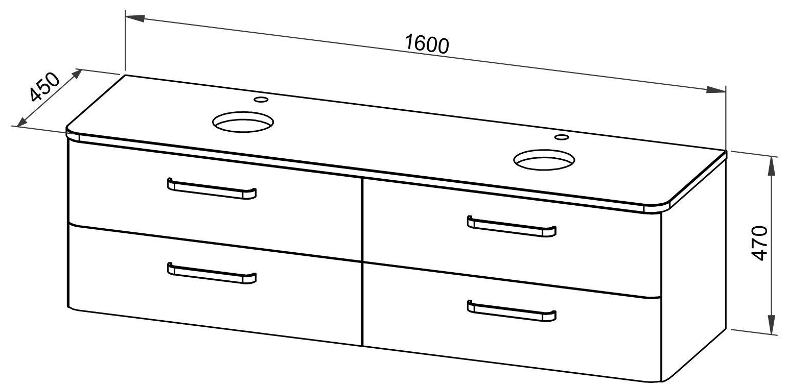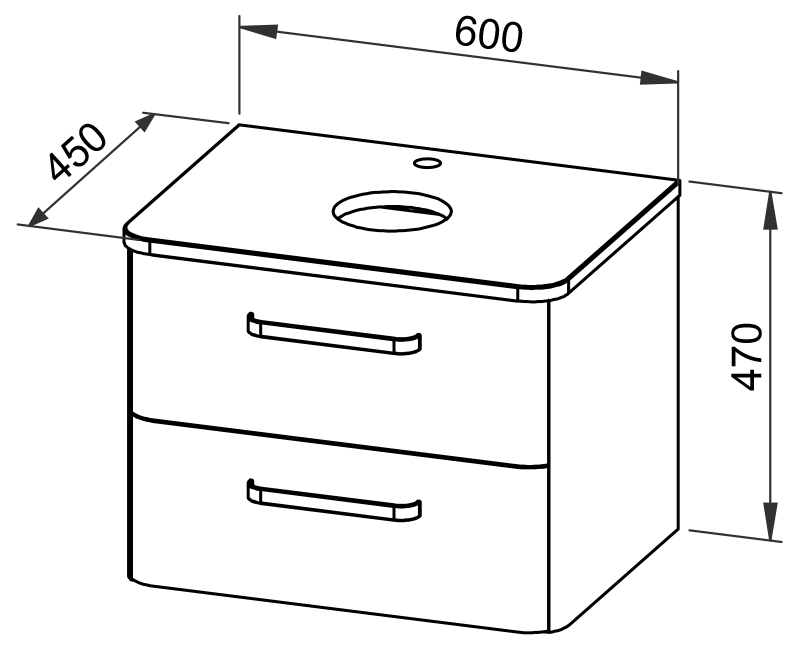 - I mobili base Charm Top sono fornite di serie con piani in ghisa minerale predisposti per lavabi da appoggio TOP 45. I piani possono anche essere forniti senza fori per lavabo e rubinetteria o con fori in posizioni diverse secondo lo schema fornito durante il processo d’ordine.