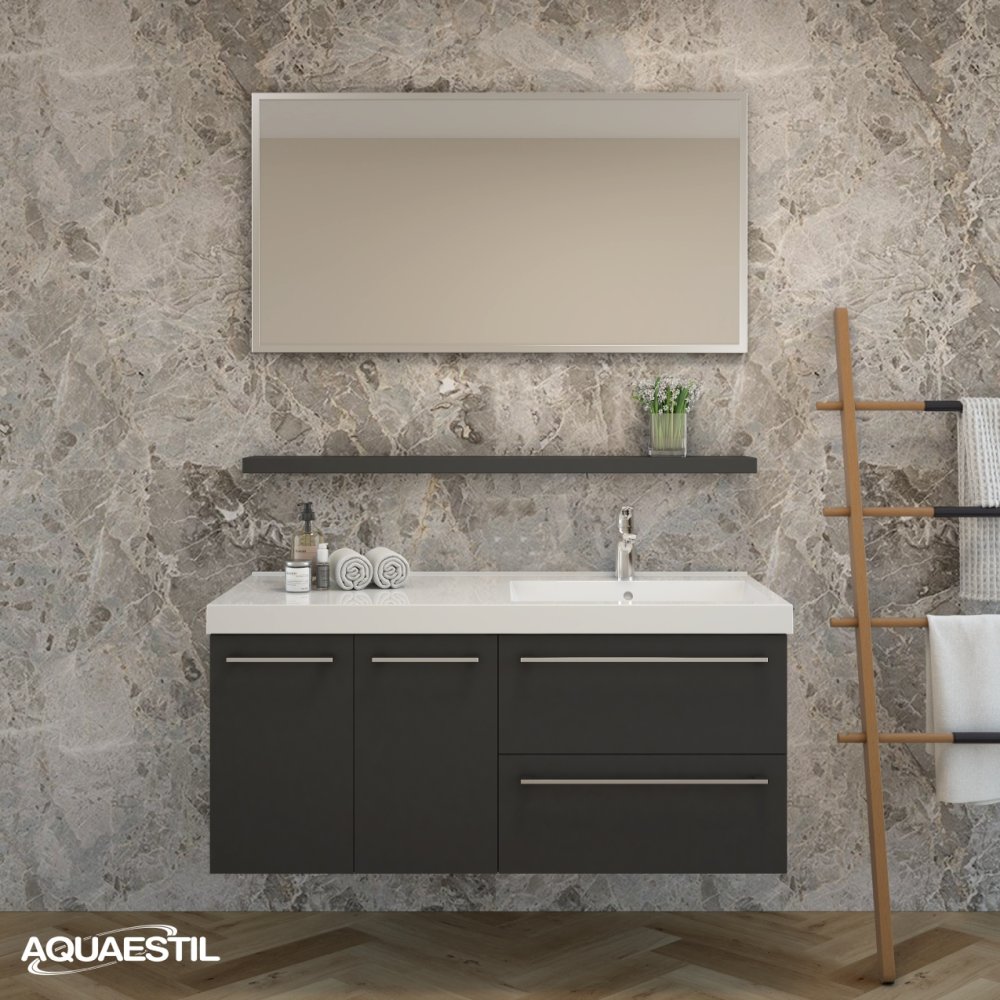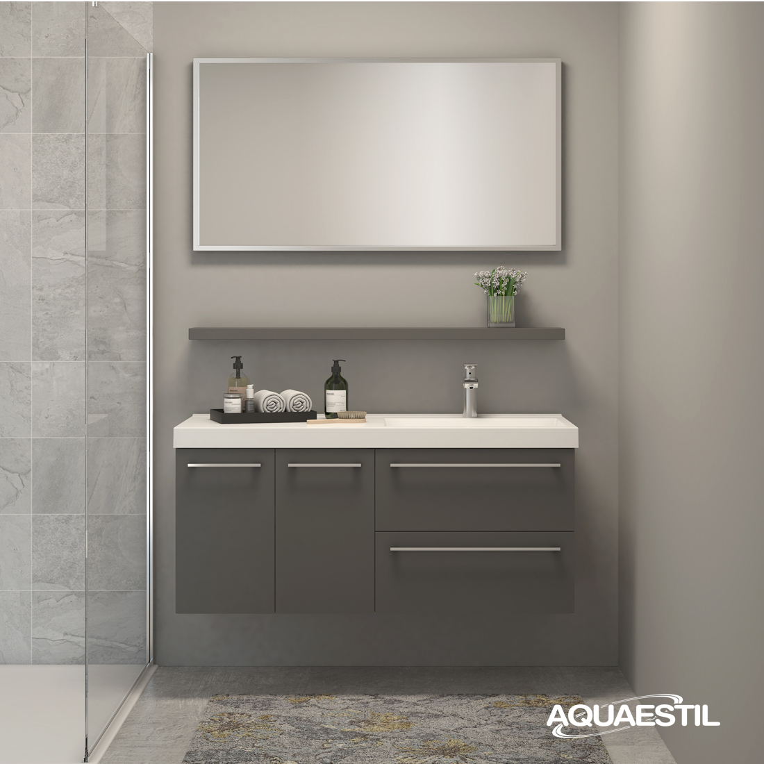 Il materiale dei mobili da bagno Aquaestil è resistente all'umidità, ma non completamente impermeabile. L'esposizione prolungata a livelli elevati di umidità e acqua può causare il rigonfiamento dei bordi delle parti in legno dei mobili e la possibile corrosione degli specchi.