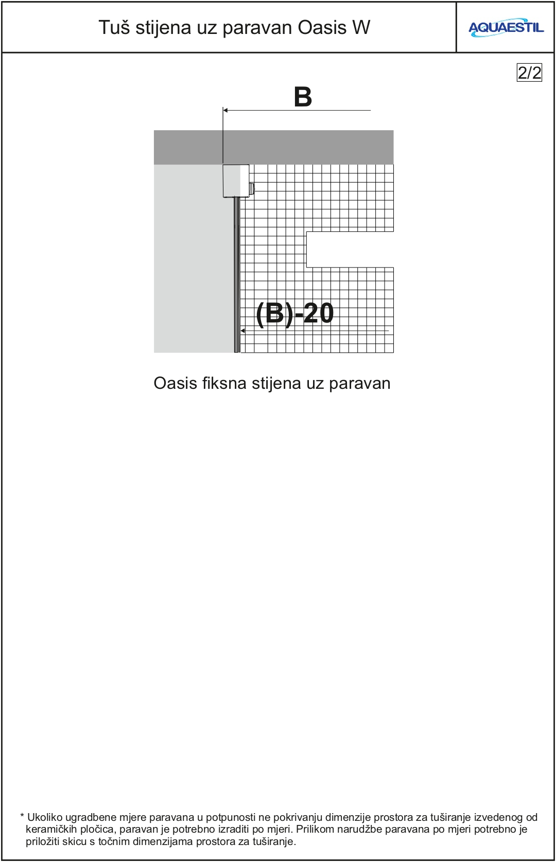 • Se la parete viene fissata alle piastrelle, e non al piatto doccia, all’ordine va allegato anche il disegno dello spazio doccia con l’indicazione esatta delle misure.