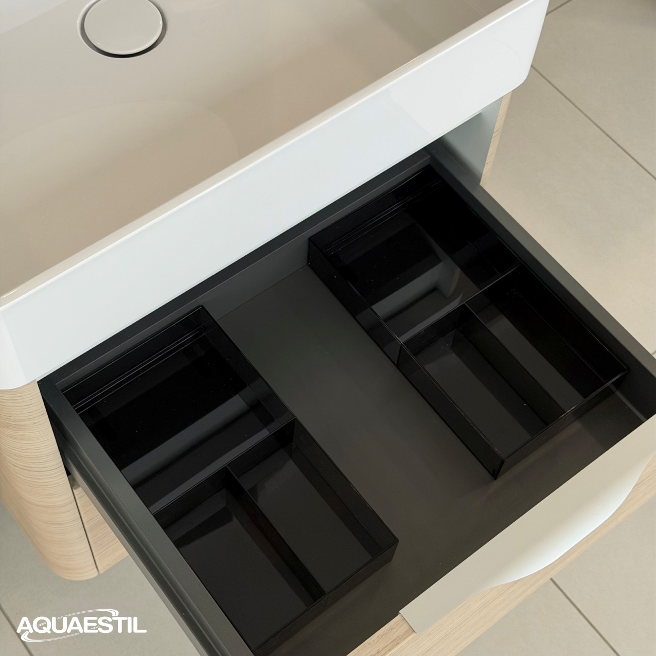 Maloprodajni partnerjiZaobljeni robovi in prefinjeni detajli linije Ardea oblikujejo edinstveno harmonijo elementov, katerih dizajn odraža brezčasno eleganco in popolno funkcionalnost. Prostoren umivalnik nudi občutek zračnosti in obilico prostora za odlaganje, dodatni prostor pa zagotavlja nizkoprofilni sifon, ki ne zahteva izreza v zgornjem predalu, ter organizator, ki je pri omaricah Ardea priložen standardno. Omarice z umivalnikom Ardea so standardno dobavljene z nizkoprofilnim sifonom in organizatorjem za predal.