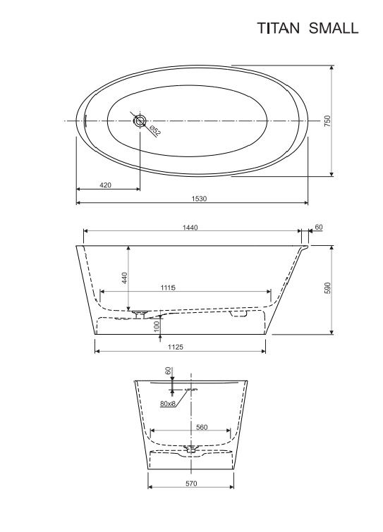 Kompaktna samostoječa kad Titan Small se bo podala v večino kopalniških prostorov.