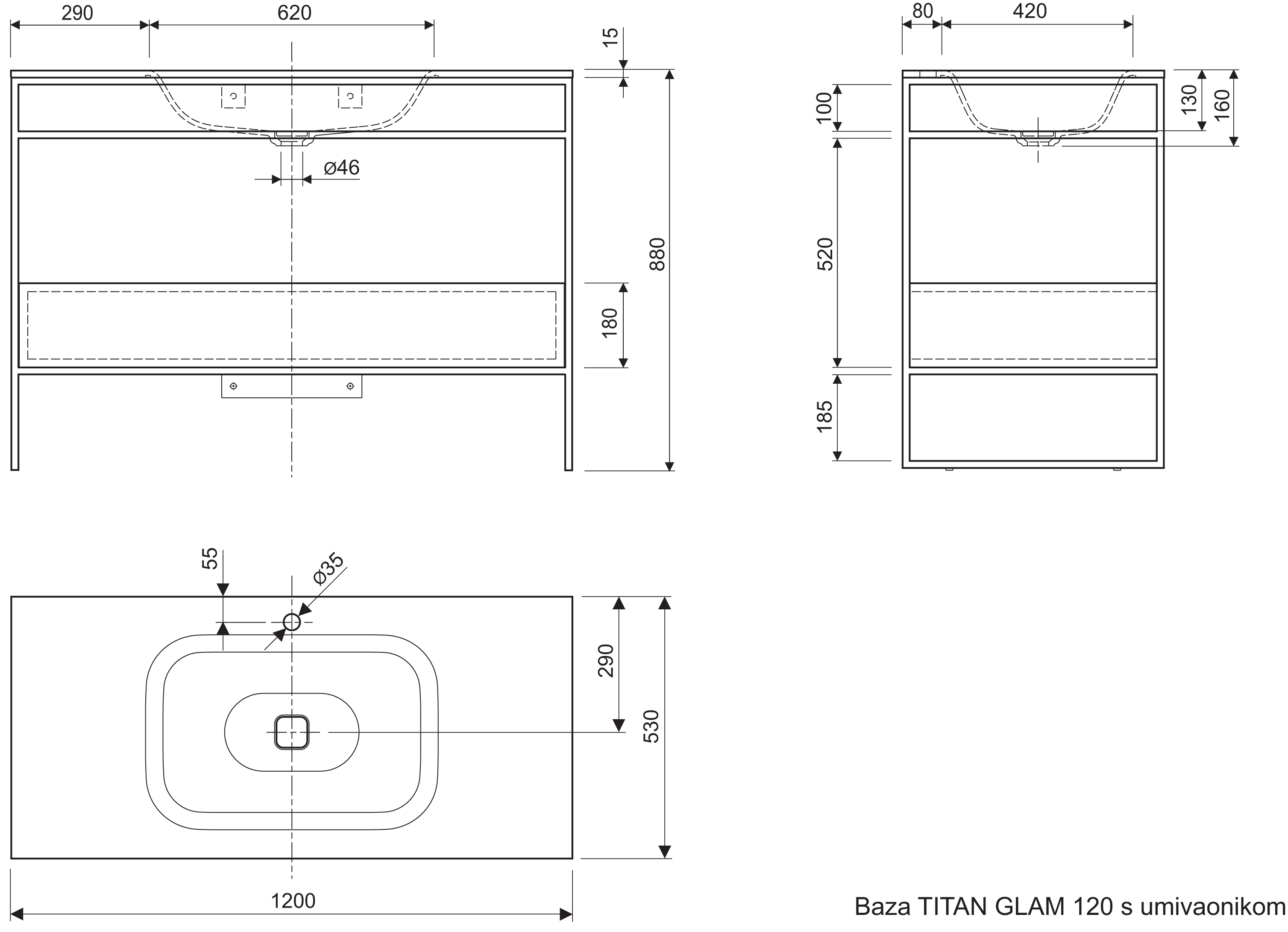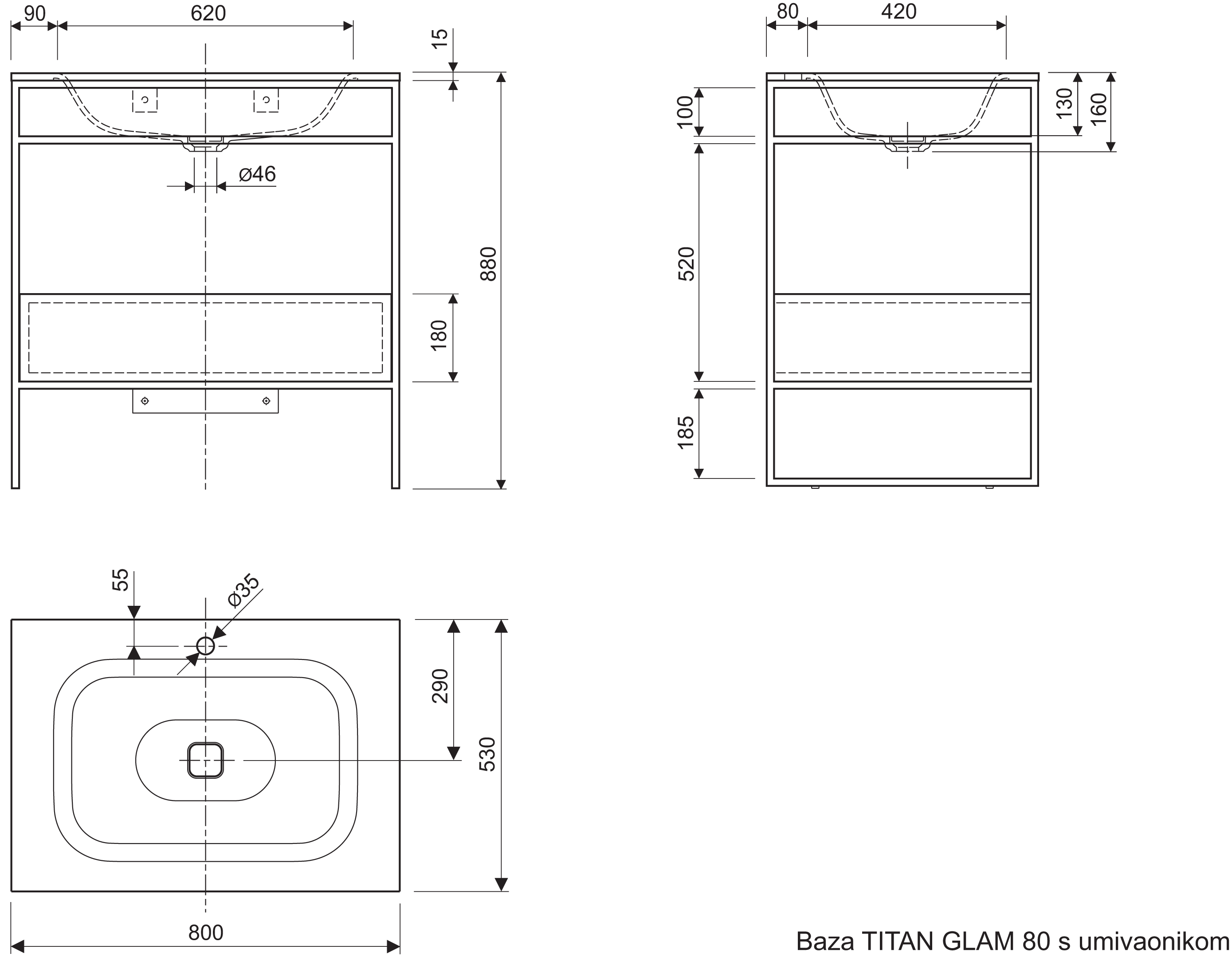 Kopalniško pohištvo Titan glam je zapeljiva kombinacija minimalistične kovinske baze v črni mat barvi z velikim predalom ter elegantnega umivalnika, ki je izdelan iz kompozita v svilnato belem mat učinku. Za popoln vtis lahko kompozicijo kombinirate z ogledalom Titan ali ogledalom z aluminijastim okvirjem v črni mat barvi.