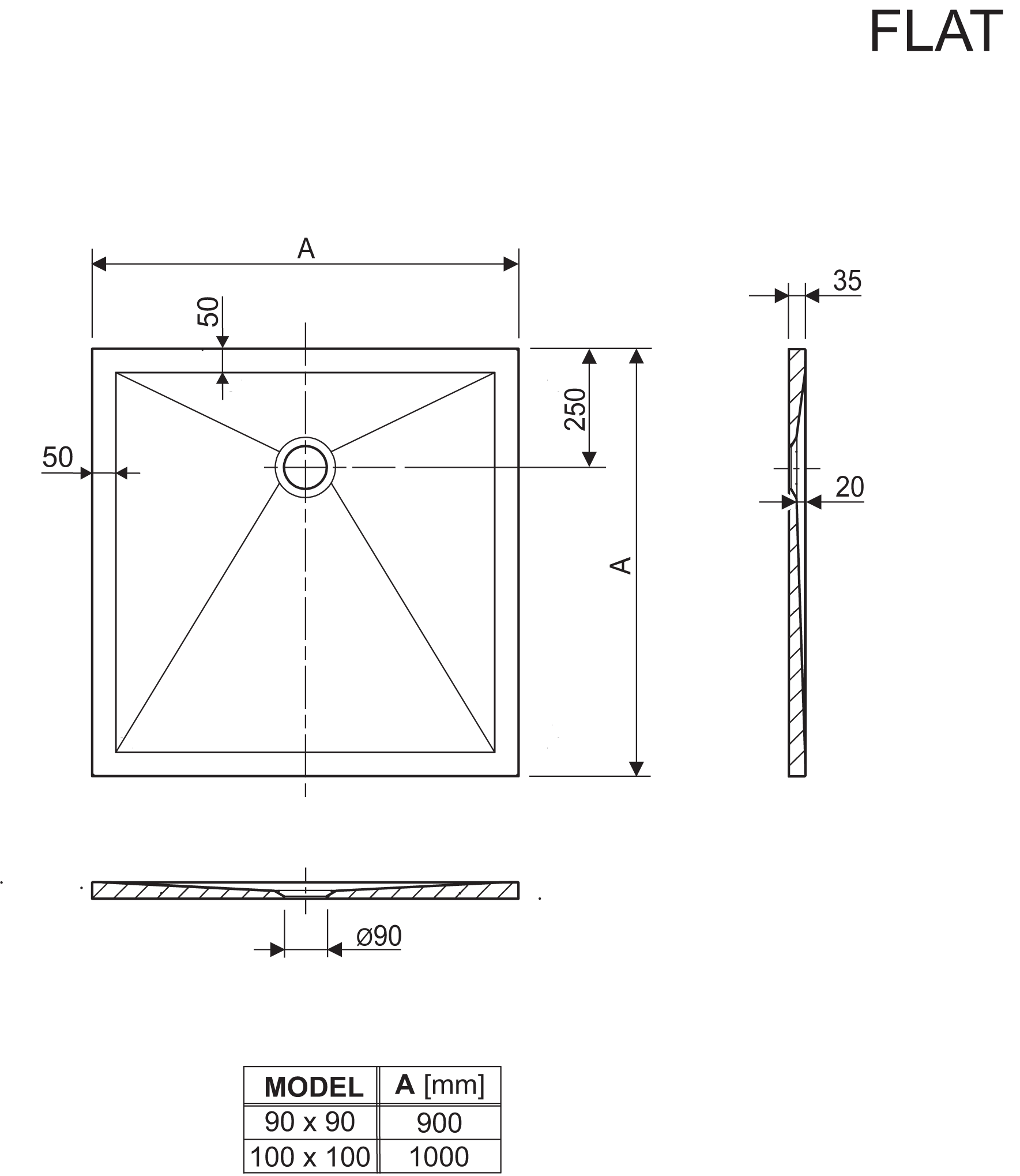 Flat je izredno plitva tuš kad, narejena iz litega marmorja in prvenstveno namenjena vgradnji na ravni tal. Material, iz katerega je narejen, ji daje nepremostljivo čvrstost in sijajno površino, ki se zlahka čisti in vzdržuje. Ta tuš kad je na voljo v beli, črni in sivi barvi s sijočim učinkom.