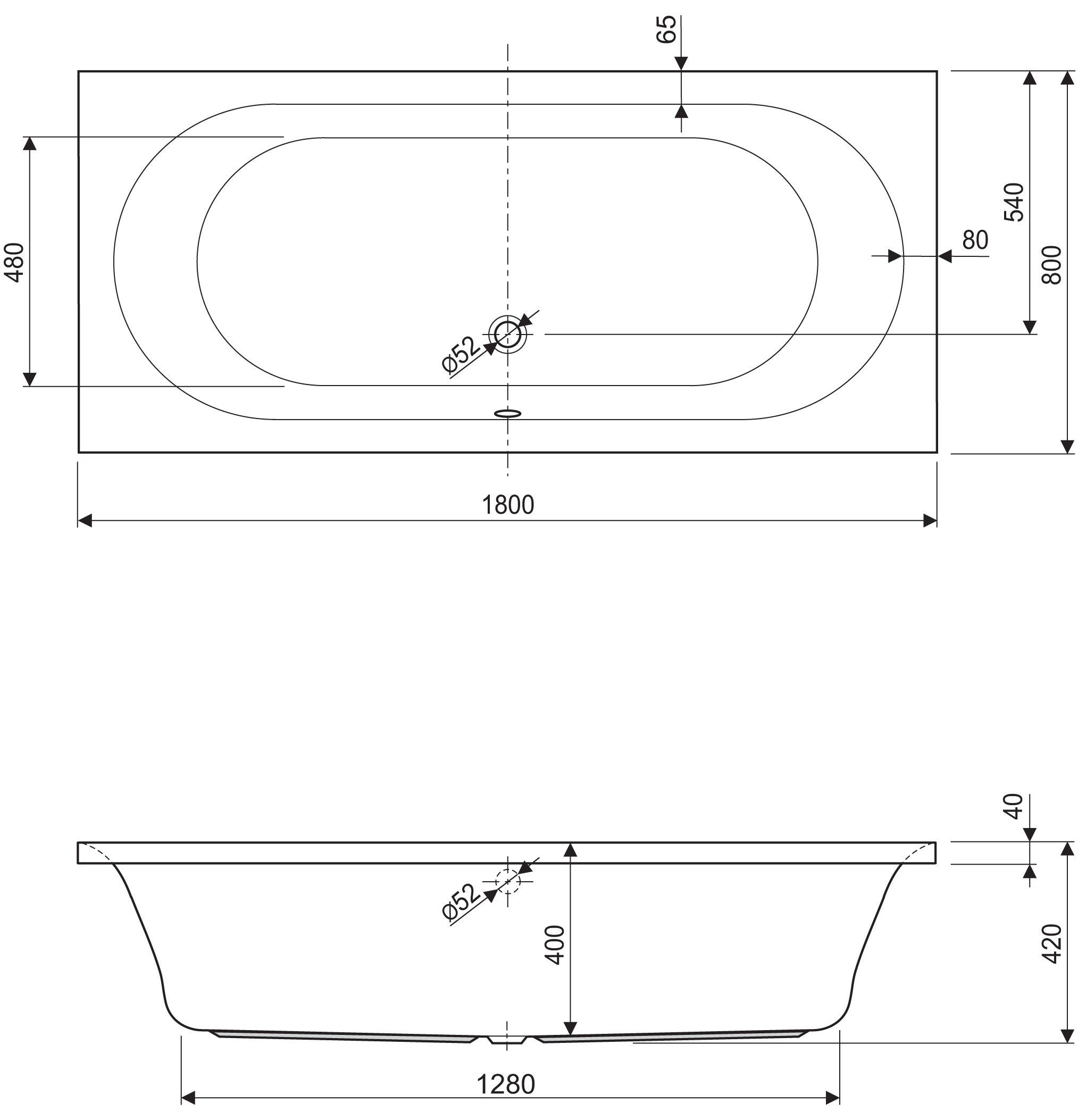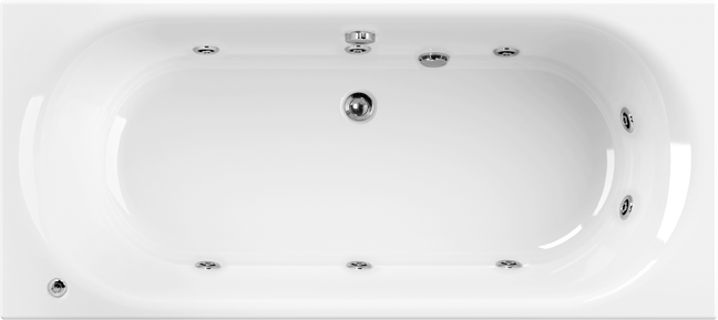 Metauro ist eine weiträumige ovale Wanne die für den Einbau zwischen drei Wänden geeignet ist.