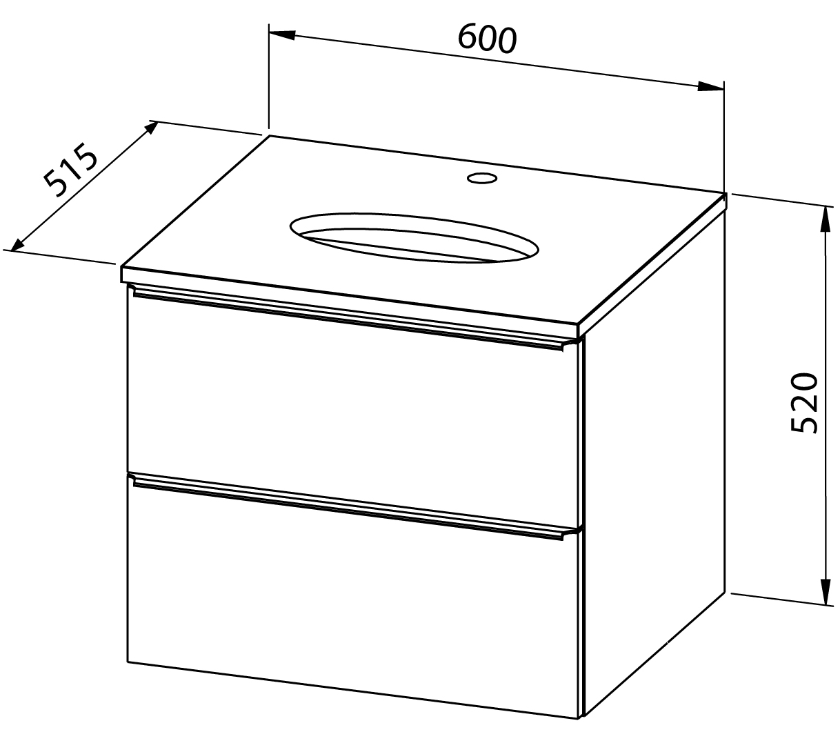 Unterschrank GRANDE TOP 60, 2 Schublade