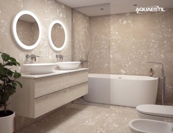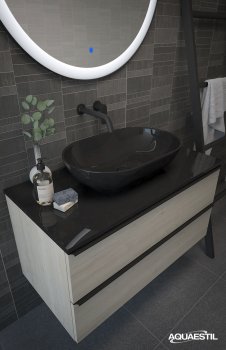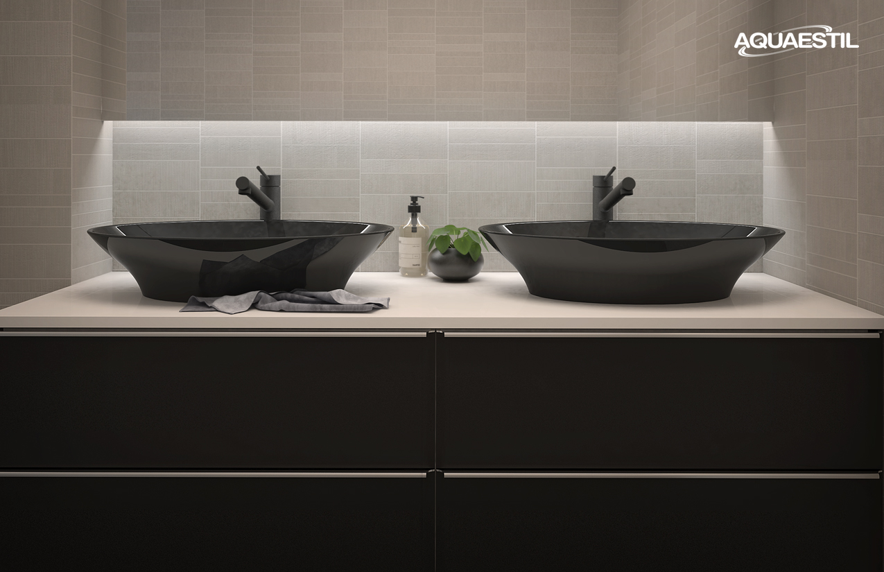 Aquaestil Badezimmermöbel sind in erster Linie für feuchte Umgebungen konzipiert. Präzise Konstruktion, hochwertige Fertigung, zusätzliche Verfahren zur Sicherstellung von Wasser- und Feuchtigkeitsbeständigkeit, sorgfältige Endbearbeitung und rigorose Tests jeder Aquaestil Badezimmermöbellinie unter feuchten Bedingungen garantieren einen Schutz gegen die Auswirkungen von Feuchtigkeit und Wassereintritt.