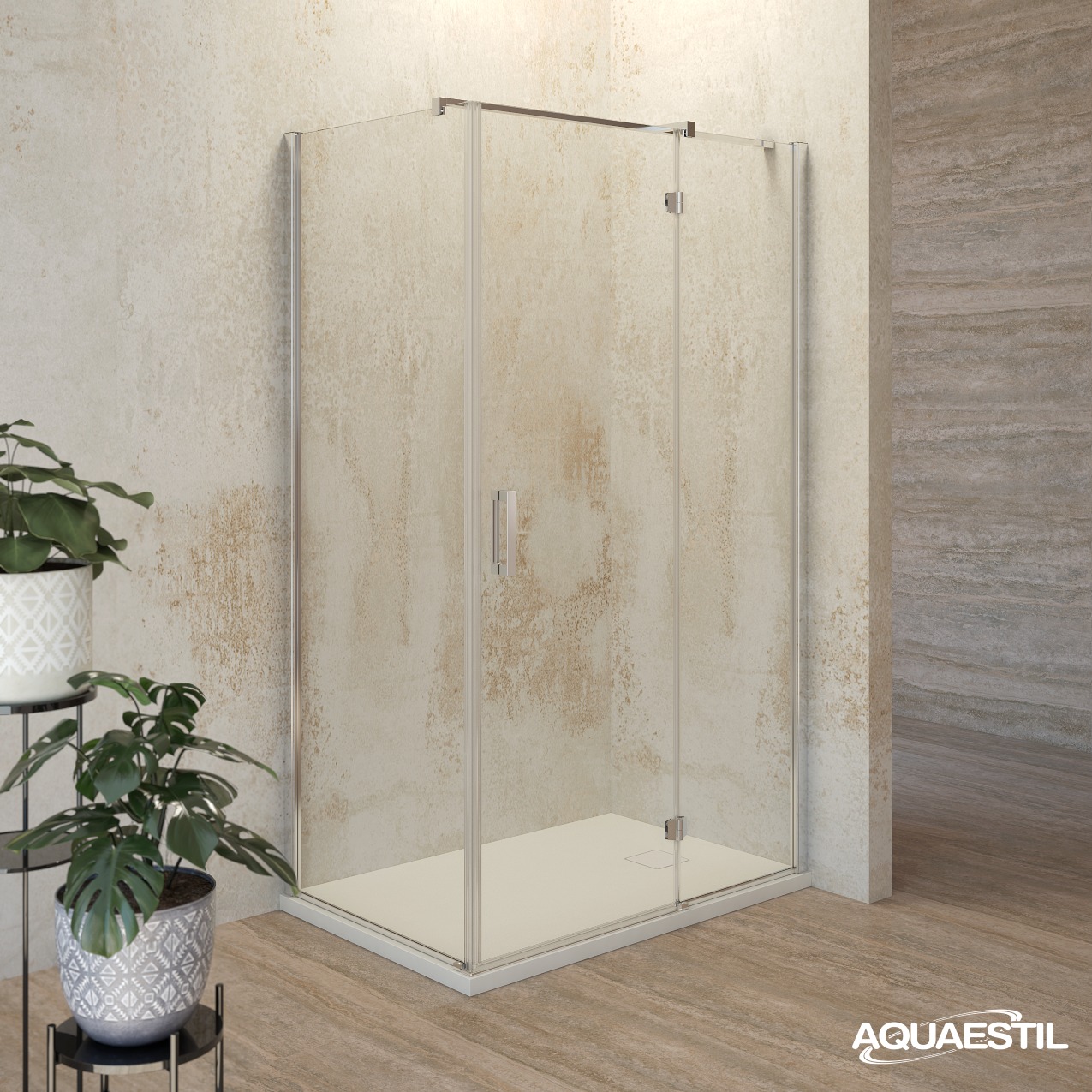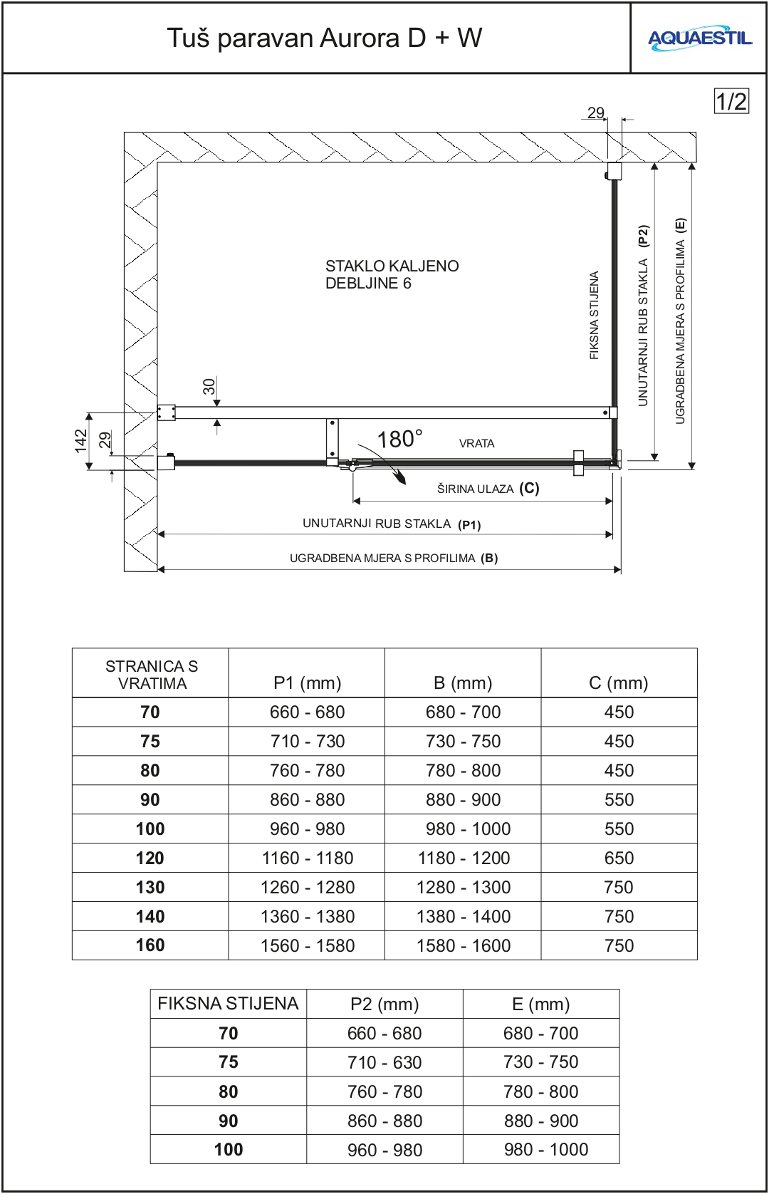 Aurora D+W ist eine moderne Glaswand für Duschwannen und besteht aus einer Drehtür "D" und einer festen Wand "W". Das gehärtete Glas der Dicke von 6 mm, die Drehtür, hochwertige Magnetdichtung und Schutzleisten an der Kreuzung der Türen und Duschwannen bieten ein Höchstmaß an Funktionalität.