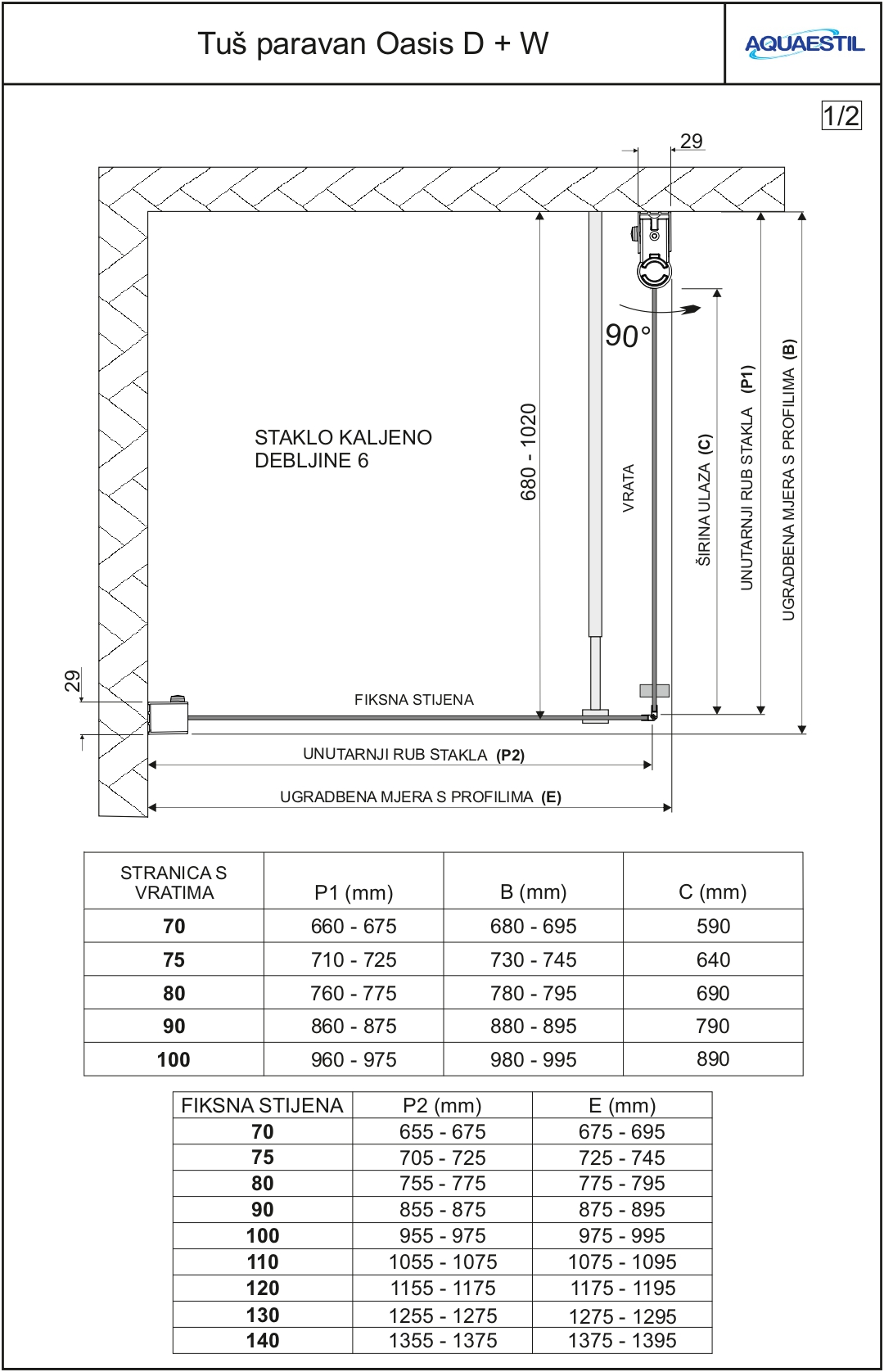 - Falls der Wandschirm auf Fliesen und nicht auf der Dusche aufgebaut wird, muss bei der Bestellung ein Entwurf mit den genauen Abmessungen.