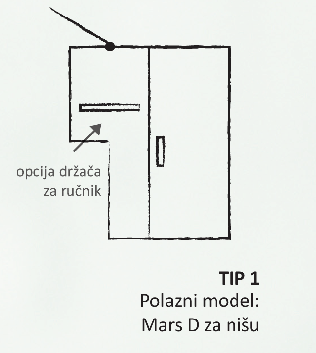 TIP 1 - paravan Mars D za nišu moguće je prilagoditi na način da dio fiksne stranice prati postojeći zidić ili obzidanu kupaonsku kadu, sve prema Vašim nacrtima. Na fiksni dio paravan moguće je postaviti držač za ručnik.
