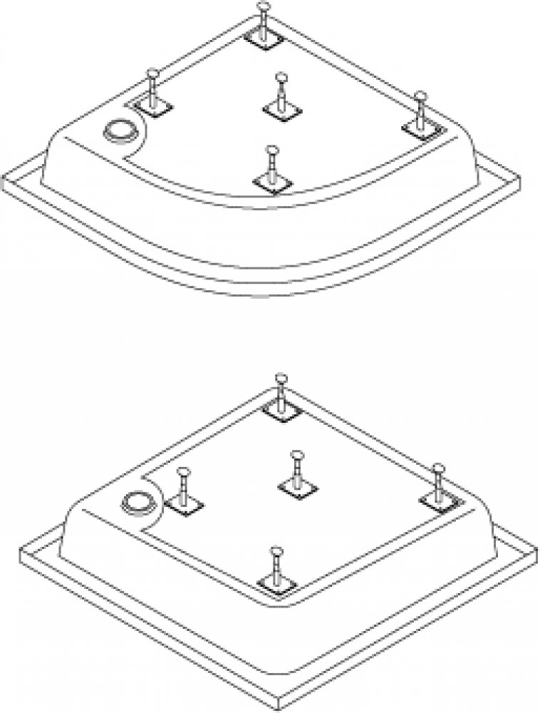 I piedini per piatti doccia vengono utilizzati per il livellamento durante la muratura o l'installazione del pannello di rivestimento. Se ordinate un piatto doccia con pannello di rivestimento, lo stesso verrà fornito con piedini e pannelli di rivestimento montati in fabbrica.