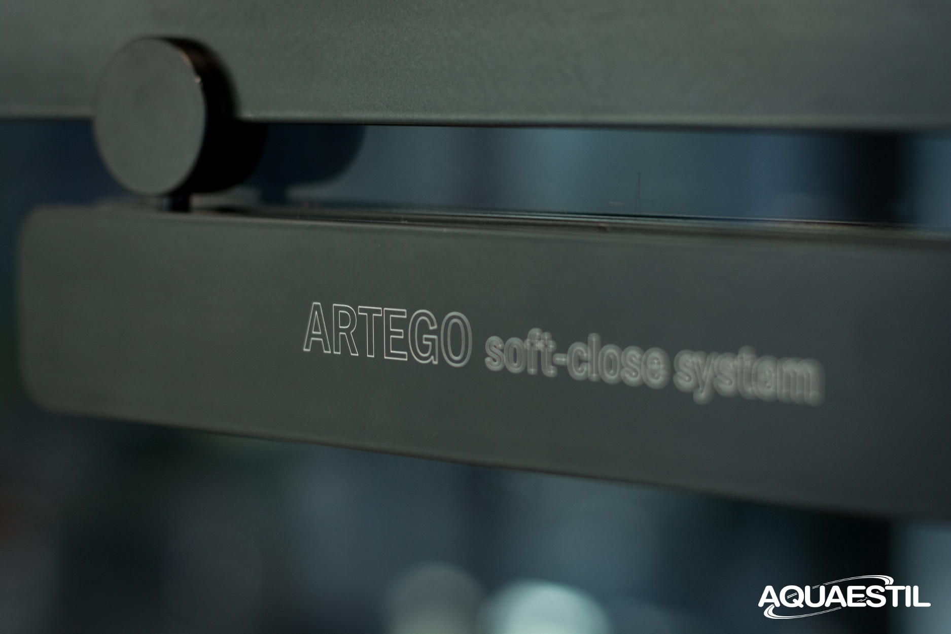 Artego possono opzionalmente essere dotati di un avanzato sistema di chiusura soft su entrambi i lati che consente alla porta di aprirsi e chiudersi in modo uniforme. Il sistema viene consegnato come prodotto separato e può essere montato su uno schermo Artego già installato. Il sistema è disponibile in argento, nero e d'oro opaco.