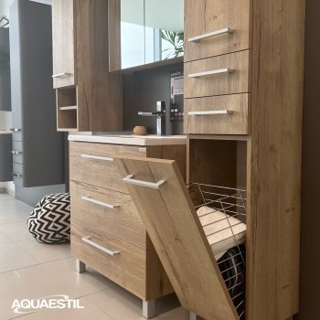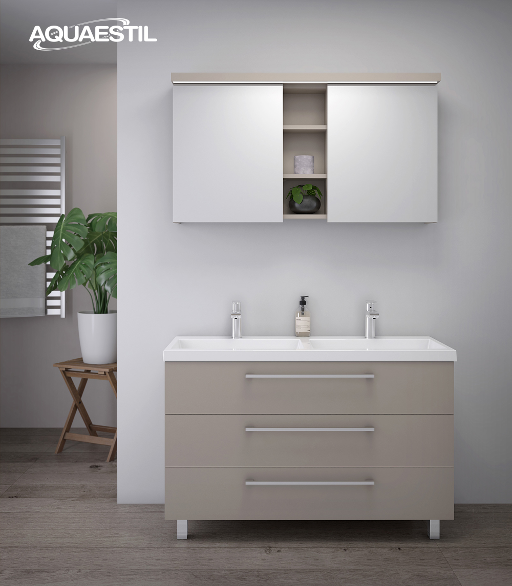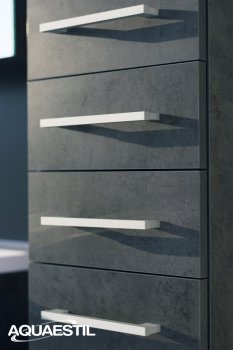 Il materiale dei mobili da bagno Aquaestil è resistente all'umidità, ma non completamente impermeabile. L'esposizione prolungata a livelli elevati di umidità e acqua può causare il rigonfiamento dei bordi delle parti in legno dei mobili e la possibile corrosione degli specchi.