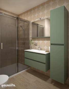 Il materiale dei mobili da bagno Aquaestil è resistente all'umidità, ma non completamente impermeabile. L'esposizione prolungata a livelli elevati di umidità e acqua può causare il rigonfiamento dei bordi delle parti in legno dei mobili e la possibile corrosione degli specchi.
