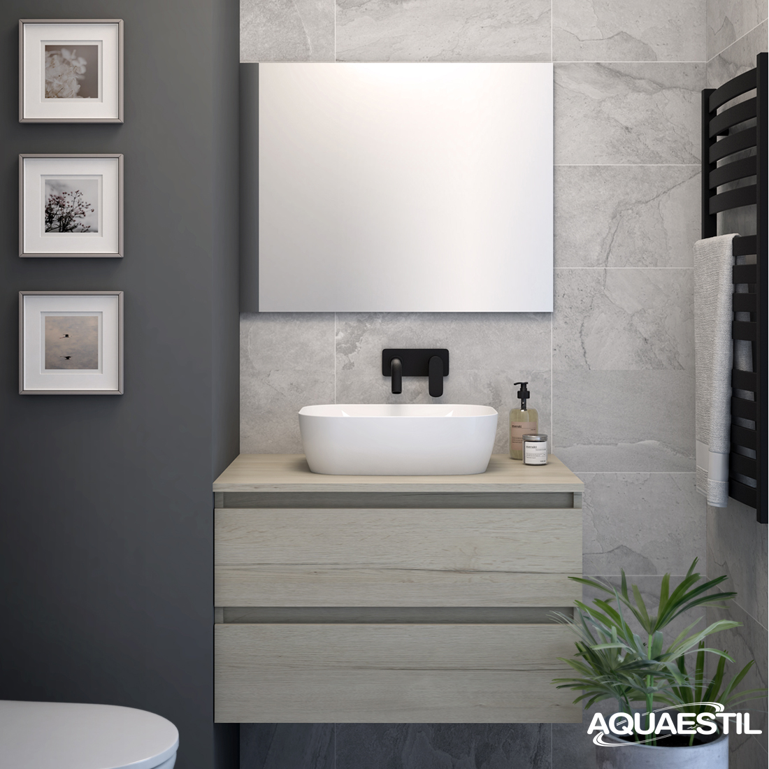 Il materiale dei mobili da bagno Aquaestil è resistente all'umidità, ma non completamente impermeabile. L'esposizione prolungata a livelli elevati di umidità e acqua può causare il rigonfiamento dei bordi delle parti in legno dei mobili e la possibile corrosione degli specchi.