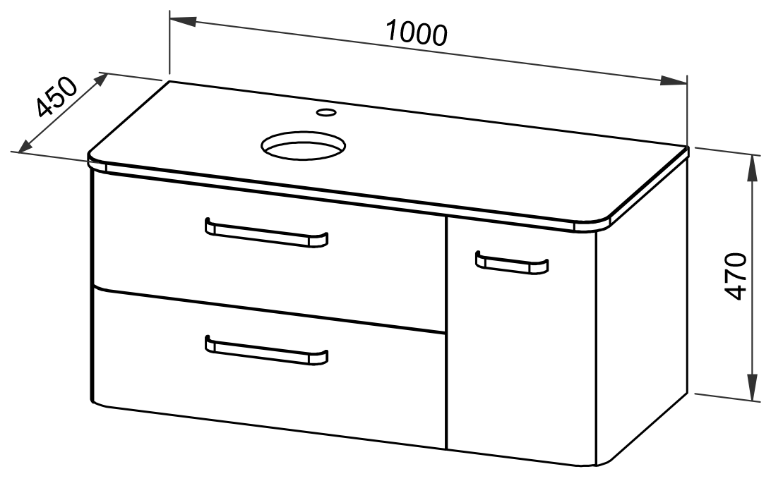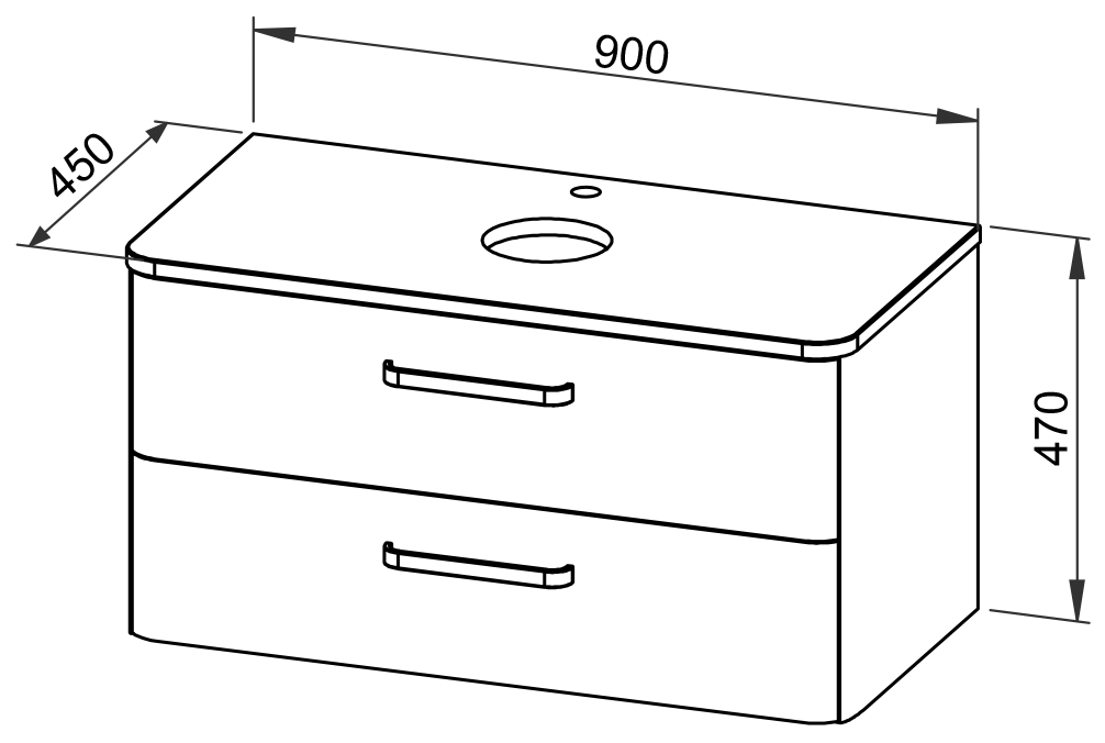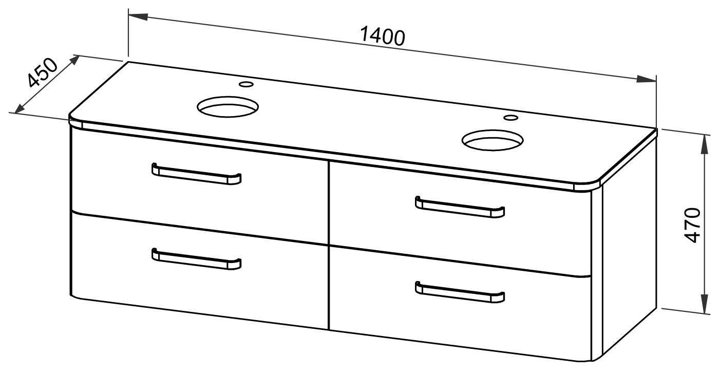 - I mobili base Charm Top sono fornite di serie con piani in ghisa minerale predisposti per lavabi da appoggio TOP 45. I piani possono anche essere forniti senza fori per lavabo e rubinetteria o con fori in posizioni diverse secondo lo schema fornito durante il processo d’ordine.