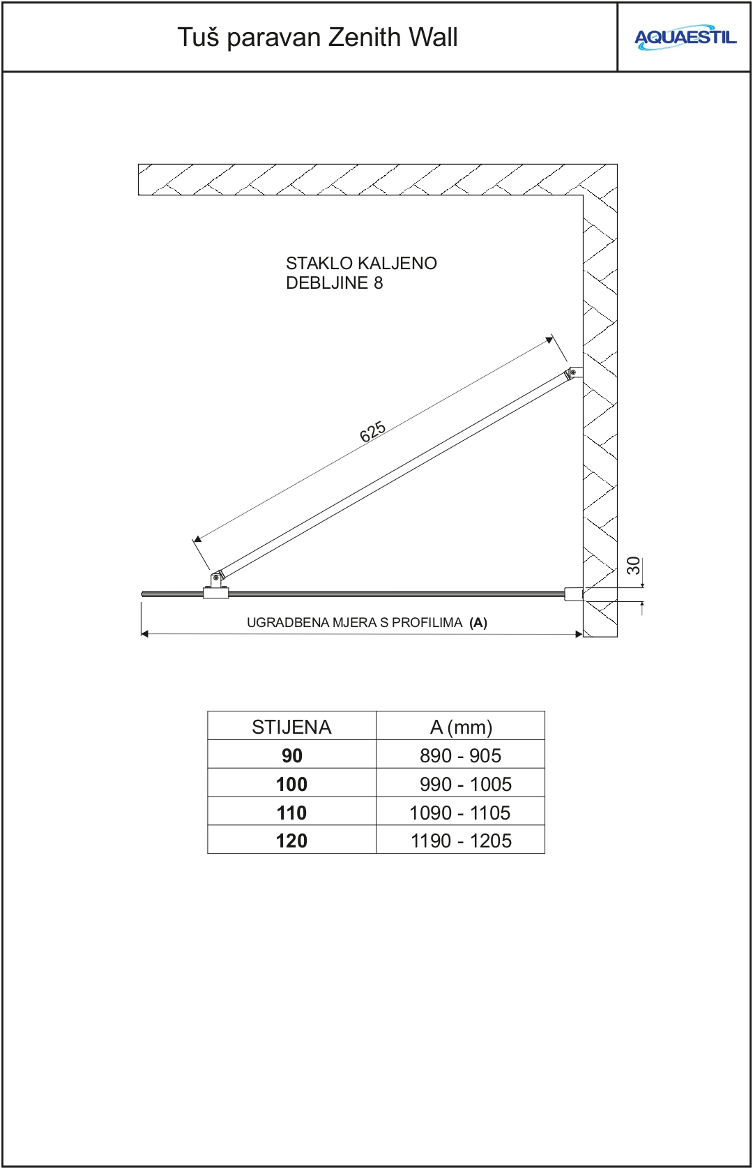 - Le pareti doccia con vetro scanalato sono disponibili solo in dimensioni standard con larghezze di 90, 100, 120 e 140 cm