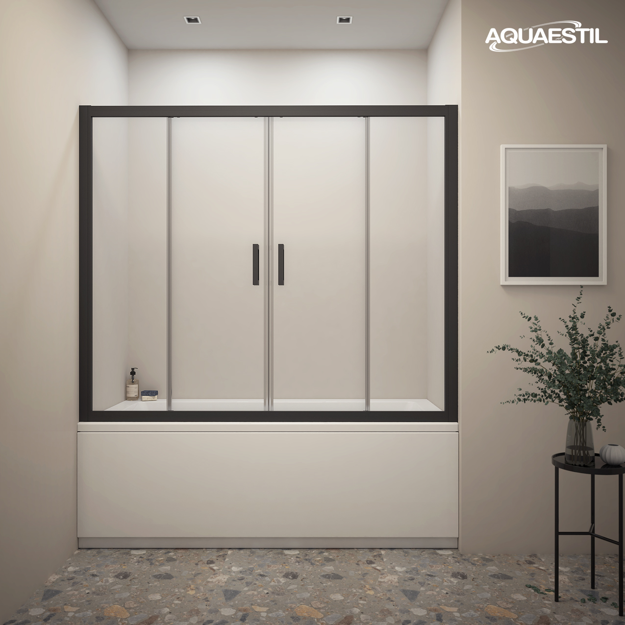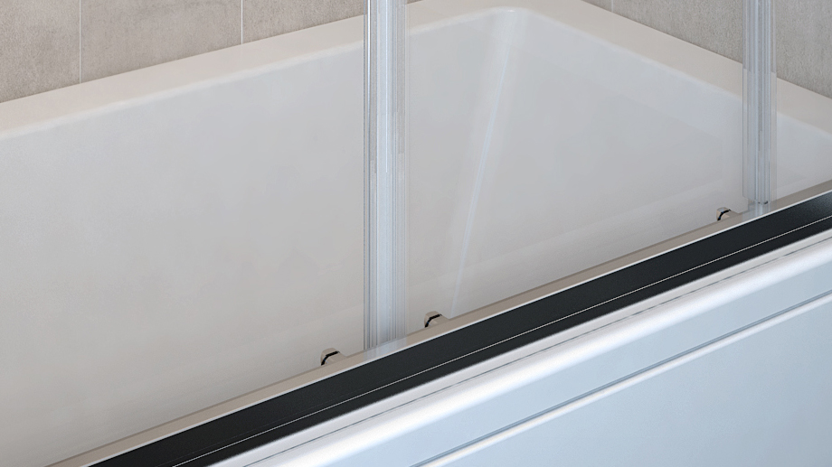 Porta scorrevole doppia, ottimi profili e completa protezione dagli spruzzi dell’acqua: ecco le caratteristiche di questa parete destinata alle vasche da bagno più grandi, chiuse su tre lati in una nicchia.
