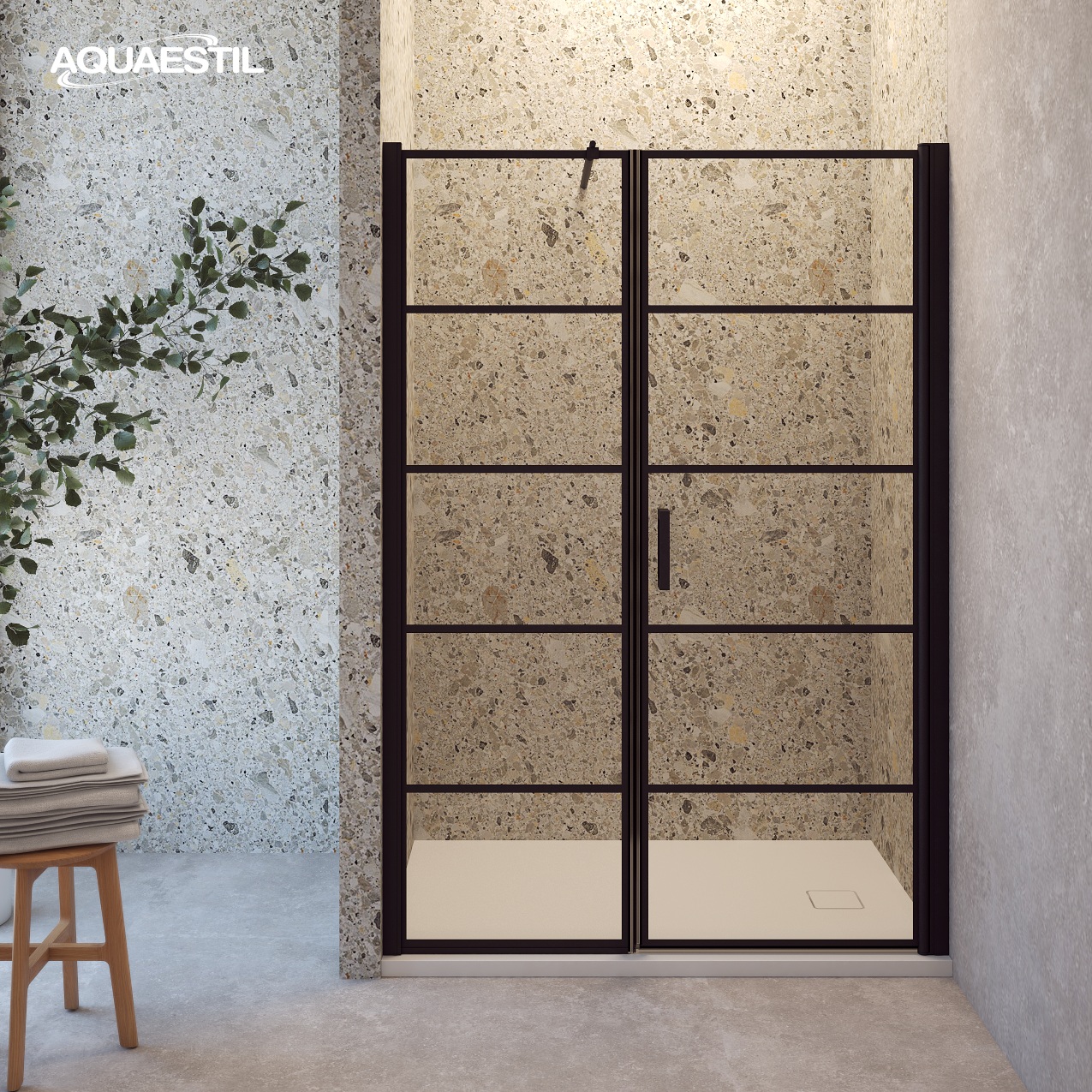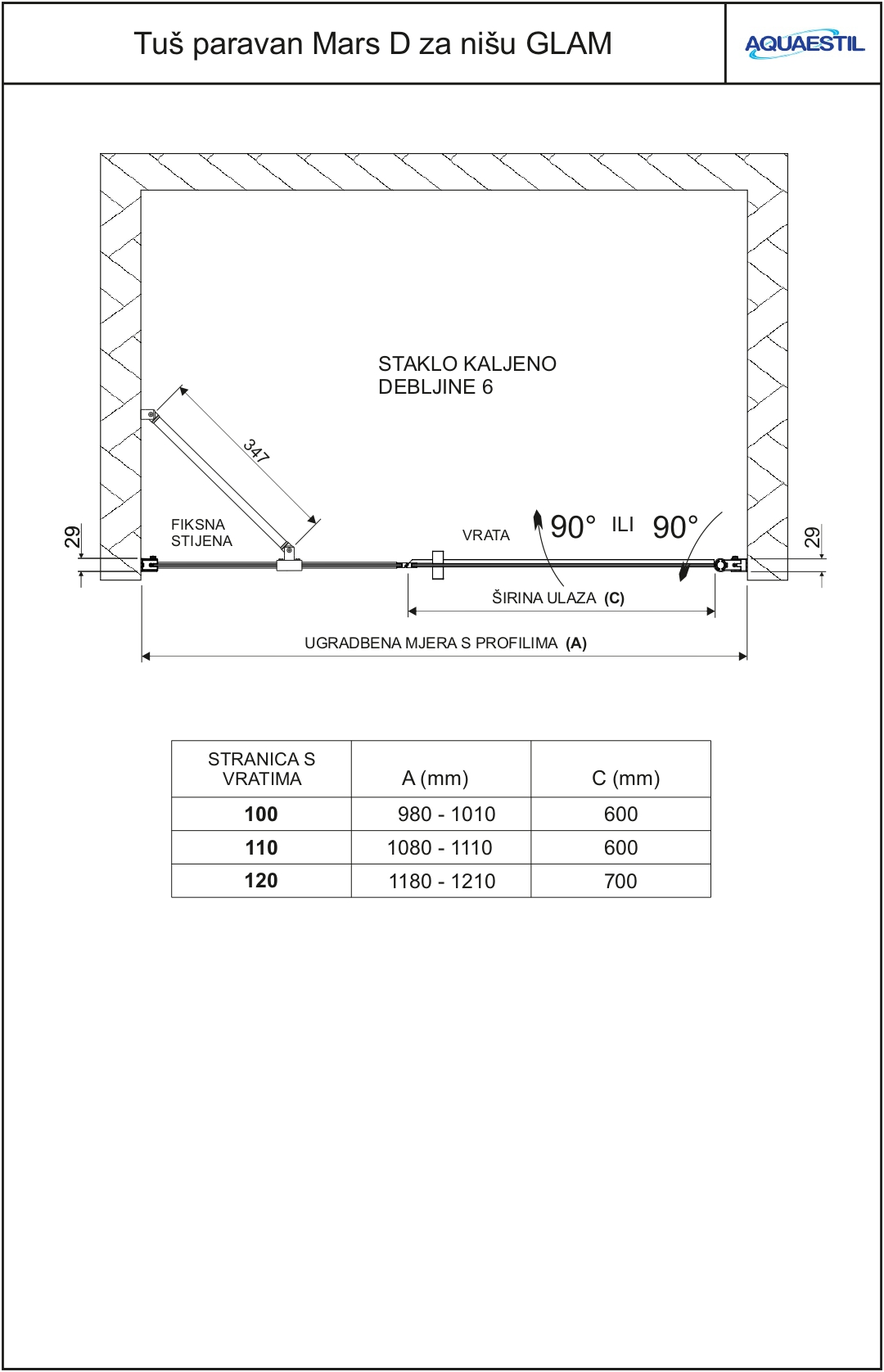• Il paravento Mars Glam per la nicchia è disponibile anche in una variante con fissatore angolare in una gamma di dimensioni da 100 a 120 cm di larghezza.