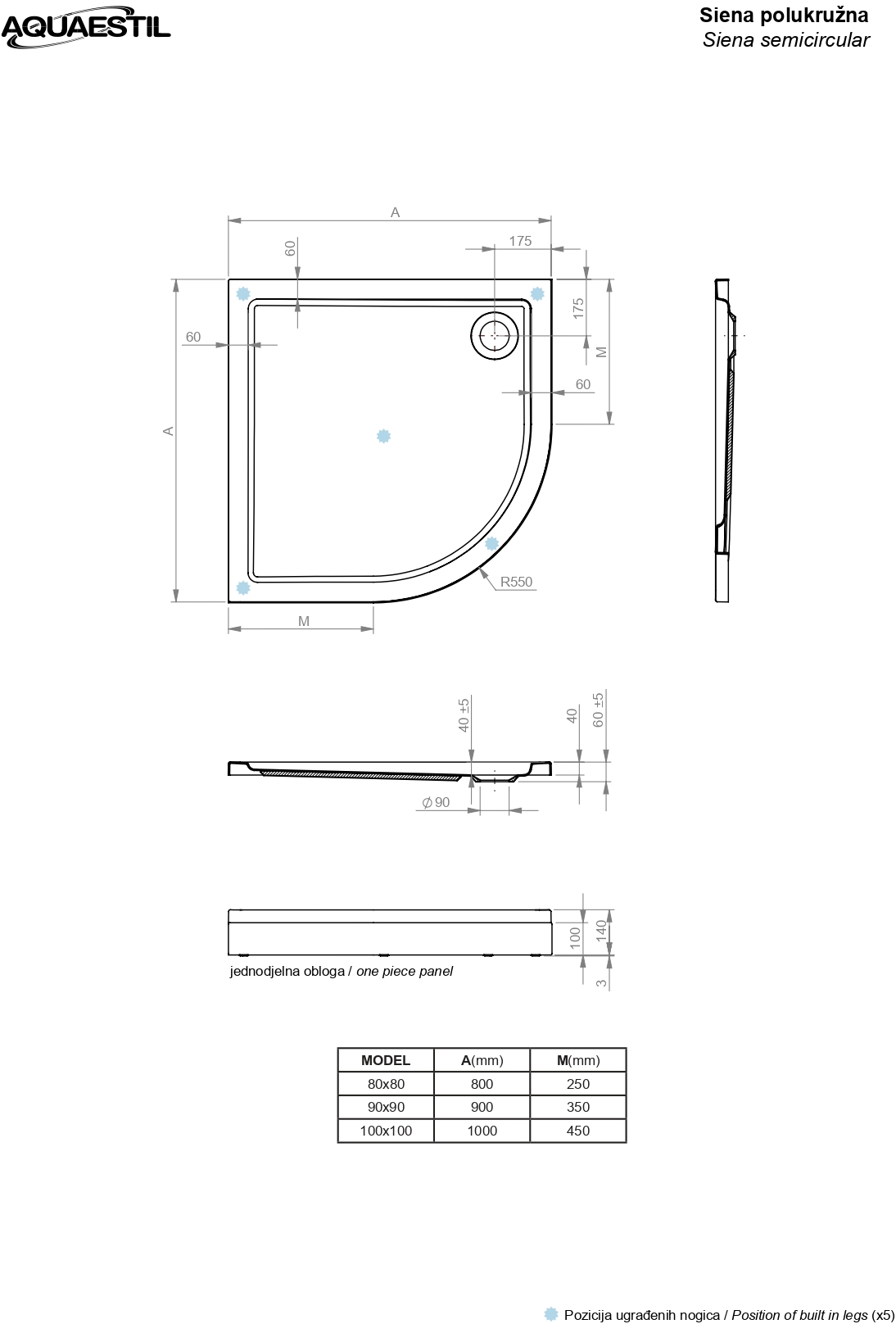 Siena è un piatto doccia semicircolare “ibrido”, a metà strada tra i piatti doccia classici e quelli a filo pavimento. Il foro del sifone è maggiore e la profondità del piatto è ridotta, a beneficio dell’eleganza e della funzionalità dell’articolo. Disponibile anche con pannelli di rivestimento.