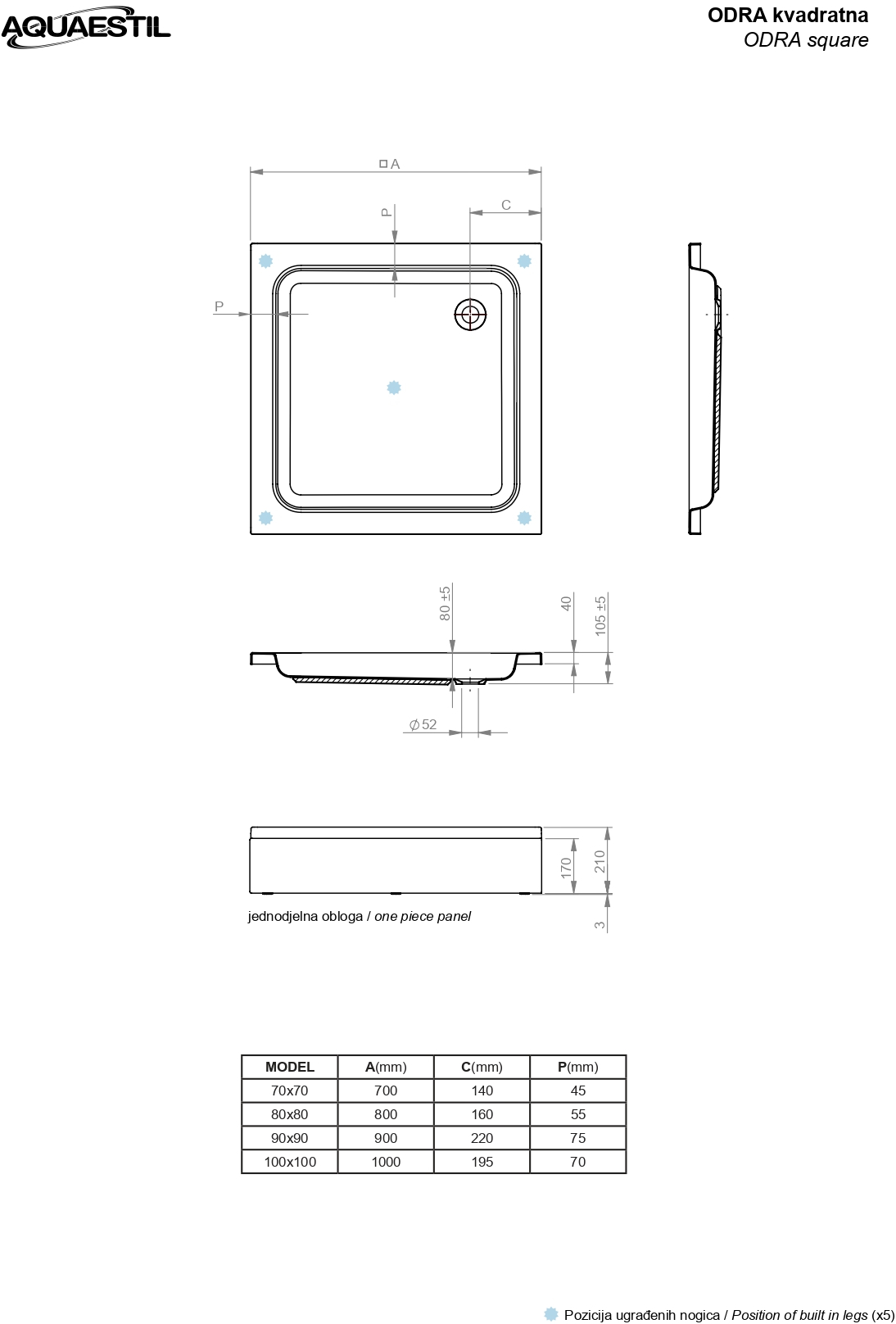 Odra è un piatto doccia standard caratterizzato dalle linee semplici; disponibili in molte dimensioni.