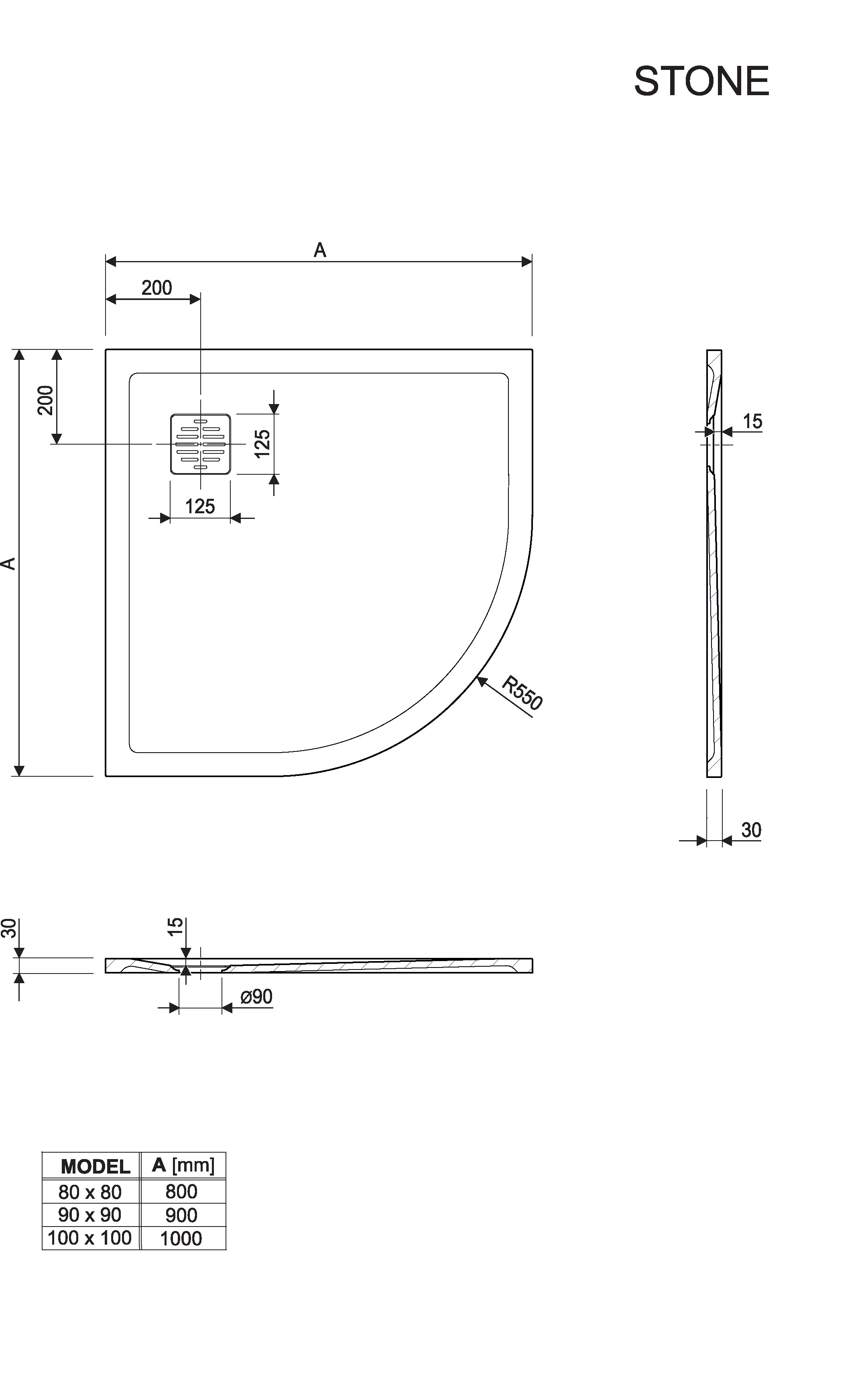 I piatti doccia Stone con superficie in rilievo sono realizzati in mineralmarmo che conferisce loro la massima robustezza e resistenza. Questi piatti doccia sono disponibili in diverse dimensioni standard e tre colori diversi: bianco, nero e cemento.