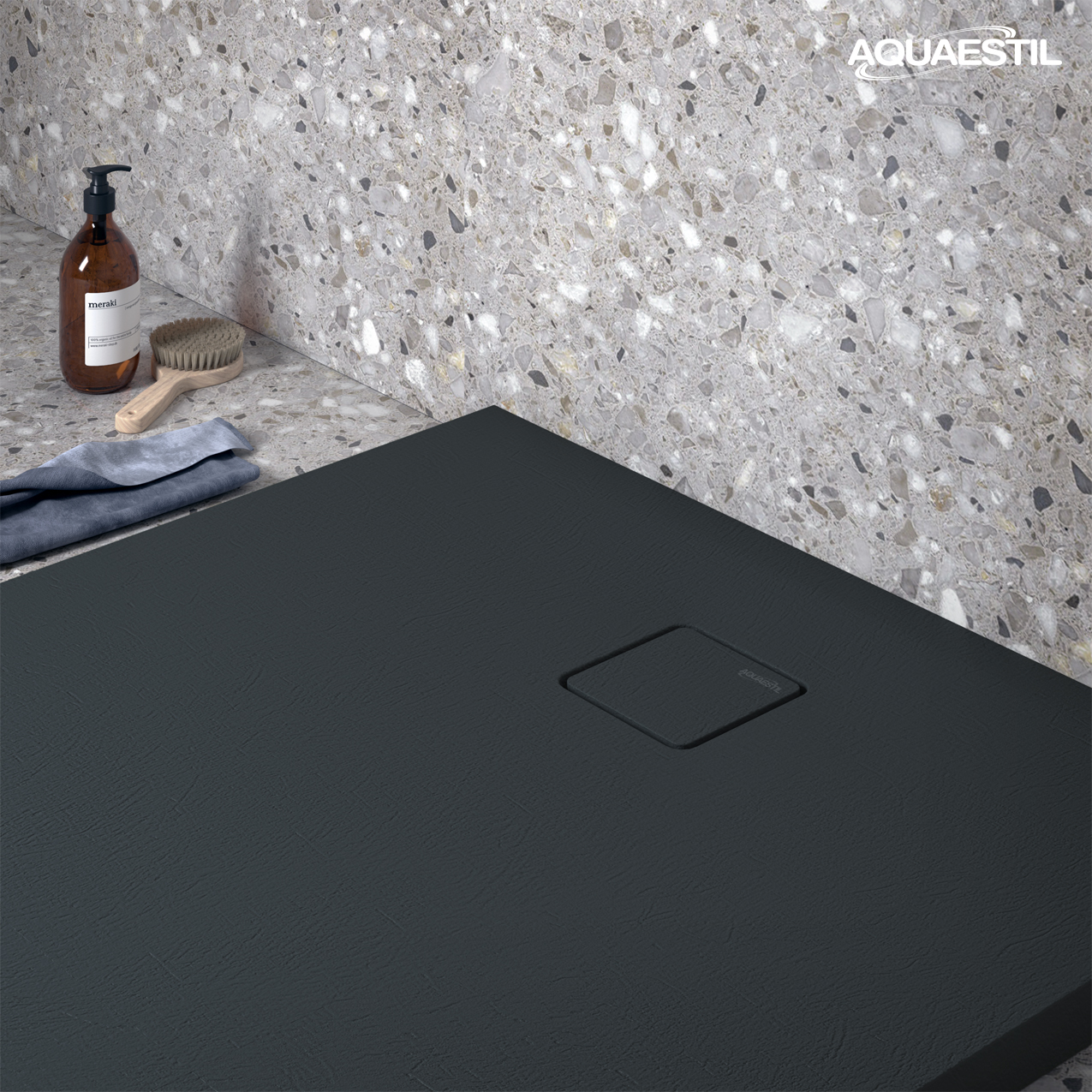 I piatti doccia in mineralmarmo Stone DeLuxe offrono una superficie solida e sofisticata che imita il cemento nei colori bianco, beige, nero o grigio cemento. Un attraente coprisifone realizzato nello stesso effetto della superficie del piatto doccia contribuisce all'aspetto caratteristico dei piatti doccia Stone DeLuxe. Il piatto doccia Stone DeLuxe ha un vantaggio particolare: può essere tagliato in diverse dimensioni in modo da adattarsi alla configurazione specifica della zona doccia.