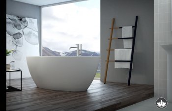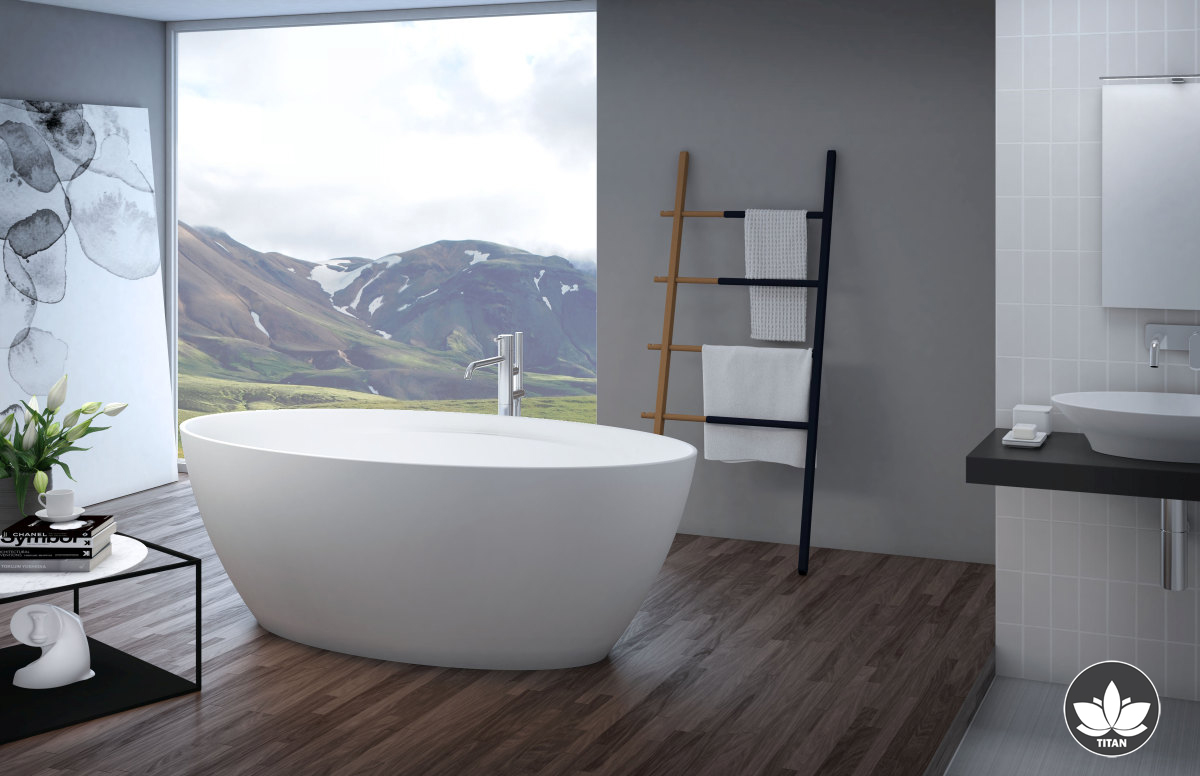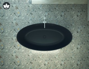 La vasca centro stanza compatta ed estremamente spaziosa Titan oval sottolinea le linee accattivanti ottenute dall'attenta lavorazione del materiale ASTONE.
