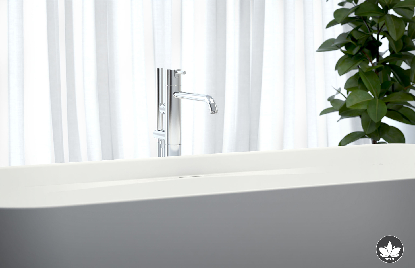 - La vasca viene fornita con gambe montate e kit con colonna di scarico con erogazione ed erogatore “slot” e con piletta di scarico clic-clac.