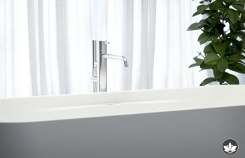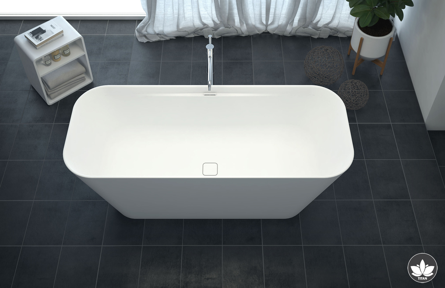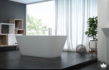 La forma rettangolare, classica ma particolare, di questa vasca centro stanza è stata impreziosita da linee arrotondate che ne esaltano tutta l'eleganza.