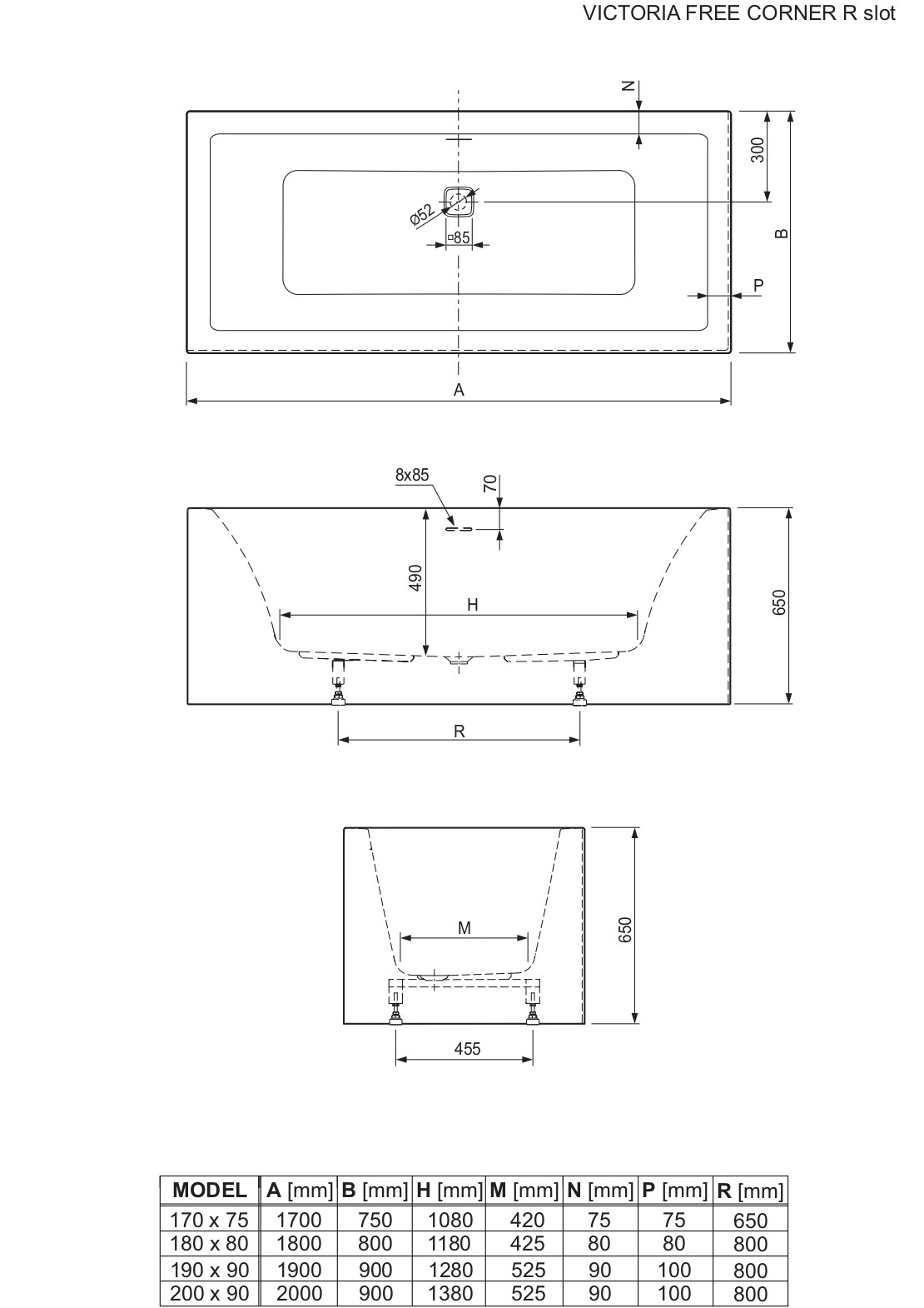 Victoria Free è una serie di vasche da bagno rettangolari le cui principali caratteristiche sono il design elegante, il comfort e la semplicità di montaggio. Queste vasche da bagno sono realizzate in acrilico sanitario colato di qualità, piacevole al tatto, resistente, naturalmente antiscivolo e di facile manutenzione. Le vasche da bagno Victoria Free sono dotate di telaio montato in fabbrica e un set troppopieno-scarico con troppopieno "slot" e valvola sifone "click-clack". Tutti gli elementi sono assemblati in fabbrica e la vasca viene consegnata pronta per l'installazione nel tuo bagno.