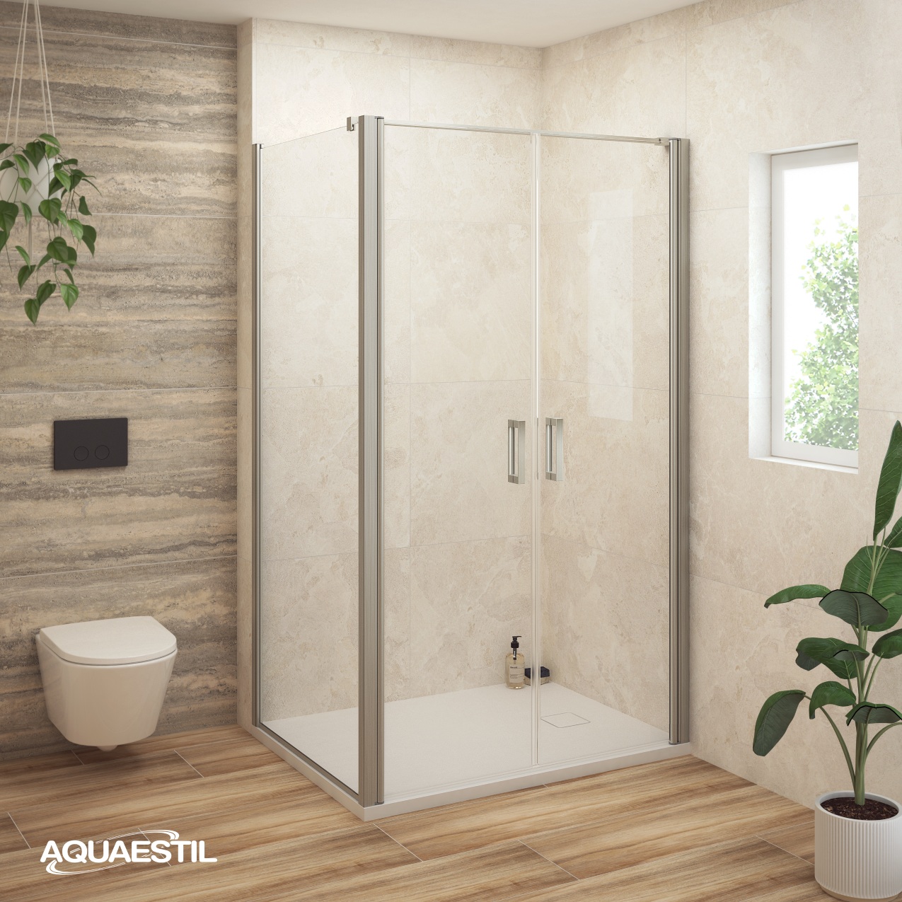 Oasis 2D+W je sodobna steklena tuš stena, sestavljena iz dvojnih vrtljivih vrat in fiksnega dela. Višina 200 cm jo naredi združljivo z modernimi, plitvimi tuš kadmi. Vrata te tuš stene so opremljena z lift sistemom, ki omogoča enostavno odpiranje brez drgnjenja po tuš kadi.